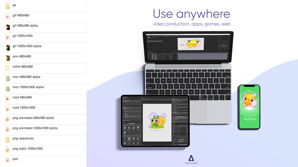 - 🖼️ Seamlessly Integrates across Platforms: "Animated Evolution: A Journey of Transformation" Volume 3 caters to designers, illustrators, and storytellers alike, just as its predecessors. Once again, you will receive .psd and .ae source files, along with various formats, including GIFs, animated PNGs, static PNGs, MOV, MP4, JSON, Lottie, and PSD files. Embrace the diversity within the evolution and unlock the limitless potential for your creative vision.
