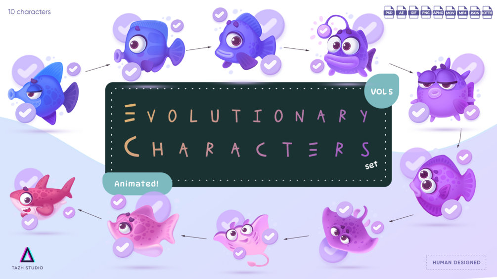 - πΌοΈ Seamless Integration across Platforms: "Animated Evolution: A Journey of Transformation" Volume 5 caters to designers, illustrators, and storytellers alike, just as its predecessor. You will once again receive .psd and .ae source files, along with various formats, including GIFs, animated PNGs, static PNGs, MOV, MP4, JSON, Lottie, and PSD files. Embrace the diversity within the evolution and unlock the limitless potential for your creative vision.