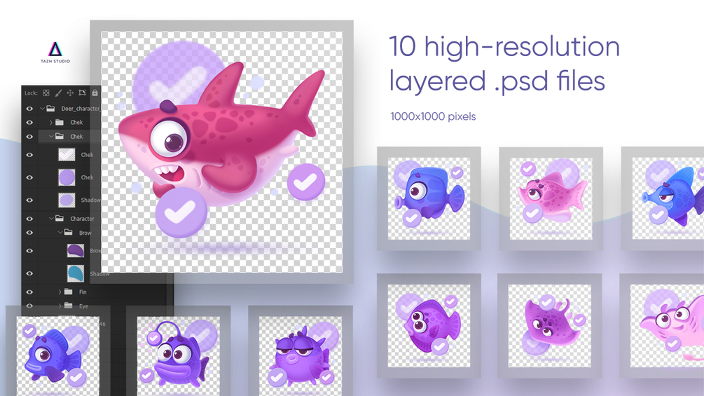 10 characters in .psd and transparent .png format